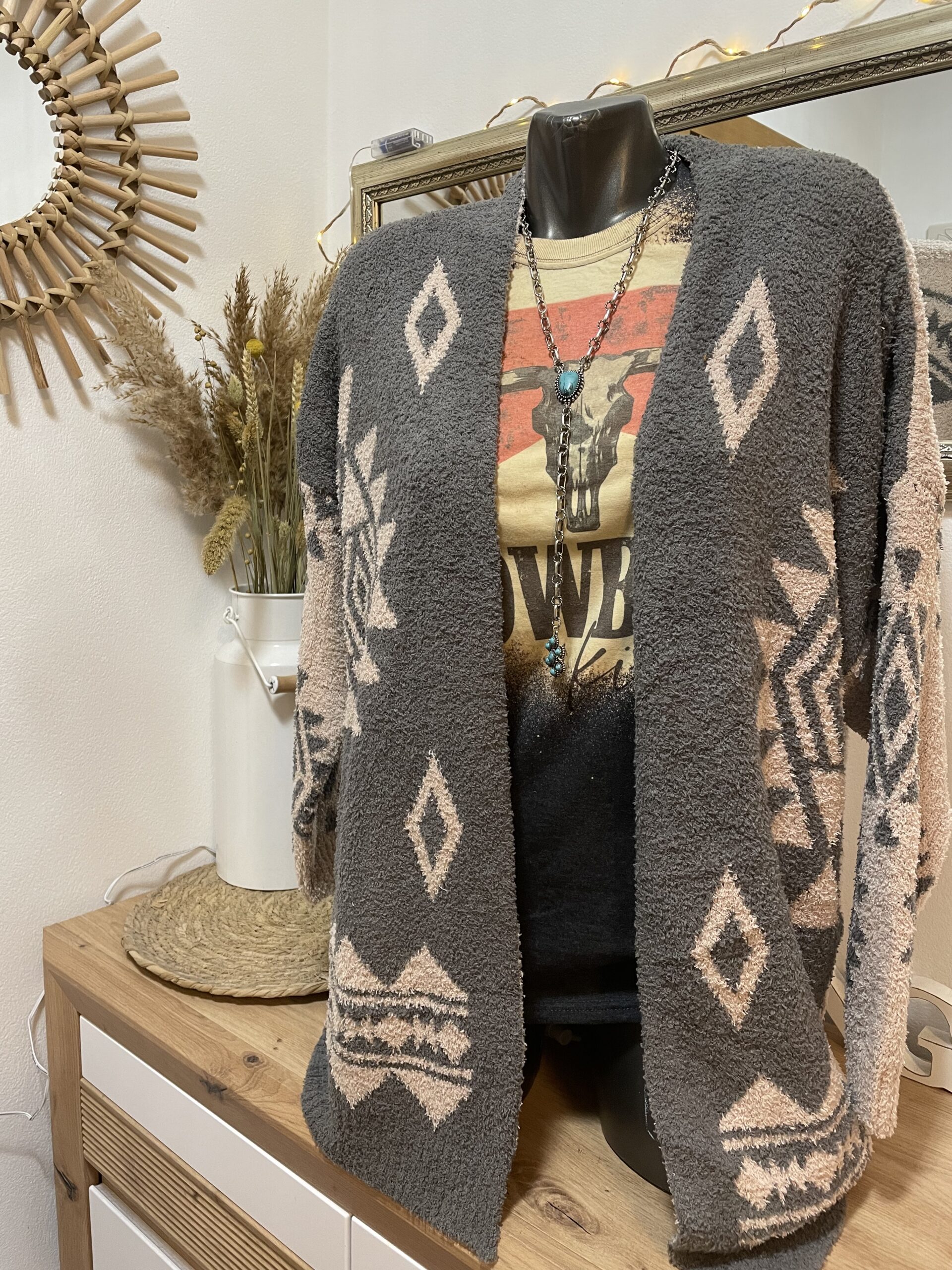 Schöne grau-weiße Aztec Kuschelfleecejacke. Die Jacke ist sehr weich und auch schön warm für die kommenden Herbst Winter Saison.