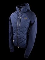 Die neue Ranch Girls Hooded Hybrid ProShield Jacke ‚OLIVIA‘ navy, vereint Funktionalität und Komfort auf elegante Weise. Die Ärmel und die Seitenpartien der Jacke bestehen aus einem superweichen und elastischen Material, das auf der Innenseite aufgeraut ist. Es ist ähnlich wie Fleece, jedoch anschmiegsamer, und die Außenseite ist glatt gewebt. Die Kapuze sowie der vordere und hintere Körperbereich bestehen aus wattiertem Nylonmaterial und sind innen glatt gefüttert. Unsere neueste Hybrid-Trainingsjacke präsentiert sich als das leichteste ProShield-Modell, das wir je entwickelt haben. Eine stilvolle Brusttasche mit Reißverschluss bietet Platz für wichtige Utensilien wie Schlüssel, Bankkarten oder Ähnliches, während zwei Eingriffstaschen mit weichen Gummieinfassungen deine Hände wohlig warm halten. Der neue Artikel zeichnet ich durch eine leichte Taillierung und eine angenehm längere Passform aus. Der figurbetonende, (schlankmachende) Schnitt fällt der Größe entsprechend aus; du musst diesen Artikel nicht größer oder kleiner bestellen. EU 40 = US L. Der hohe Kragen schützt vor Wind, und die Kapuze schmiegt sich nah am Kopf an. Links auf der Brust befindet sich ein brandneues Designelement: ein Metall-Pin mit geprägtem Signet-Logo. Eine weitere Markenaussage findet sich als hellgraue Stickerei am rechten Oberarm. Überzeuge dich selbst von unserem neuesten Funktionsartikel für Westernreiter. Das neue Hybrid-Material, welches aus Polyester und Spandex besteht hat eine Anti-Pilling Ausrüstung dennoch ist der Artikel nicht für Arbeiten wie das Heumachen oder Holzarbeiten geeignet. Es ist ideal, um dich warm zu halten und für Feuchtigkeitsaustausch beim Reiten zu sorgen. Für Outdoor Arbeiten ist unsere Winter Jacke ´Madison´ ideal geeignet.