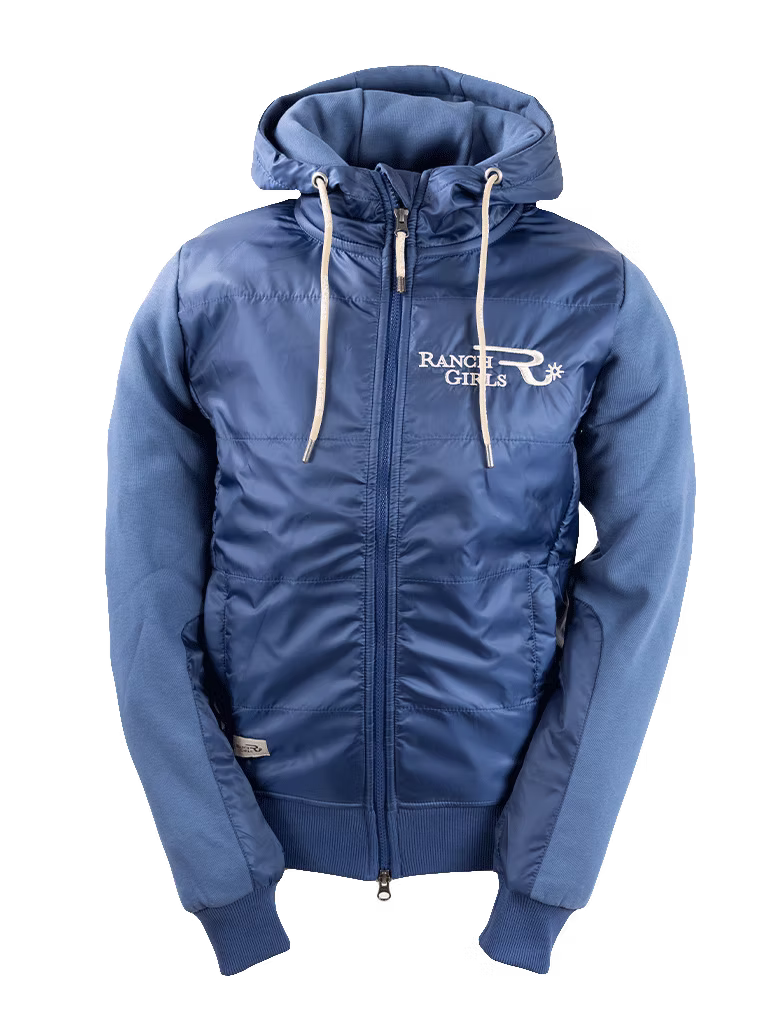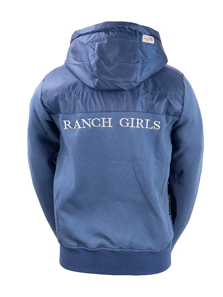 Der unschlagbare Ranch Girls Sweatshirt Pro Shield ´CARRY´ denim blue, ist eingetroffen. Die ultimative Kombination 3 Faden Sweatshirt Qualität und Nylon. Das Nylon Material – am vorderen Körper, an der Kapuze und über die Schulterblätter – , hält Wind und Regen ab. Die warme Sweatshirt Qualiät sorgt für Bewegungsfreiheit und Feuchtigkeitsaustausch. Ein toller Artikel der Dich durch alle Jahreszeiten begleitet. Feine Ranch Girls Logo Stickereien kennzeichnen einen besonderen Markenartikel.